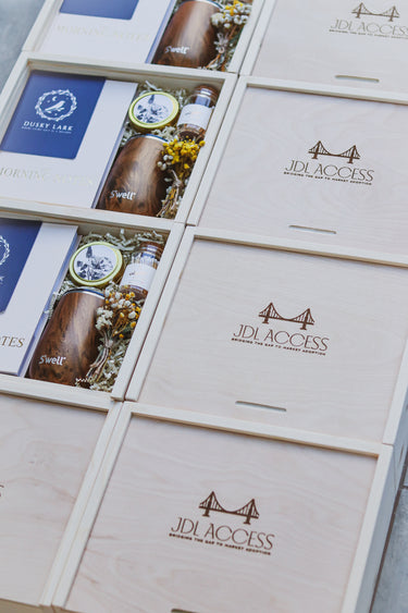 At Dusky Lark, we see gifting as a meaningful experience - a blend of artistry, craftsmanship, and thoughtful curation. Our boxes are handmade, our products are premium and small-batch, and our custom designs are created just for you.