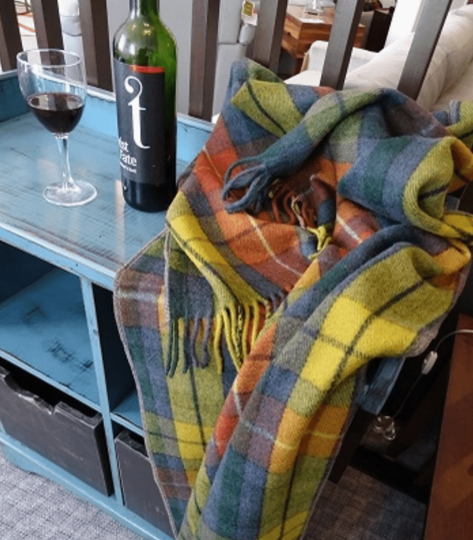 - Optional: Deluxe tartan wool throw blanket (+$70).