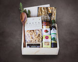 Delight the pasta lover with a thoughtfully curated Italian-inspired gift set designed for slow meals and unforgettable flavors. Inside, you’ll find authentic Fidanzati pasta made to pair beautifully with rich meat and fish sauces, Tuscan herb–infused olive oil, a fragrant garlic & herb salt, and a velvety red pasta sauce layered with pine nuts, garlic, basil, and Parmesan. The experience is rounded out with artisanal small-batch shortbread cookies, a wooden pasta spoon, harvest vegetable cheese, and The Fresh Pasta Book from the Williams Sonoma Test Kitchen - filled with approachable recipes and timeless techniques. All items are presented in our signature handcrafted pine wood box, which can be engraved with your logo or personalized with names and custom artwork. The gift box can also be paired with an optional handmade cherry wood cutting board - engraved or left natural for a clean, timeless look.