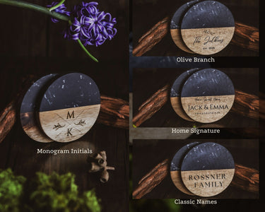 - Custom engraved wood & marble coasters (set of 2) by Dusky Lark*